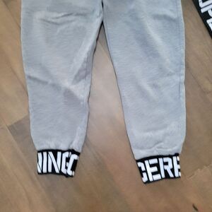A slim high waisted gray sweat pant with contrasting OC's logo banding along the cuffs. Wear high waisted or fold down waist band to reveal OC logo.