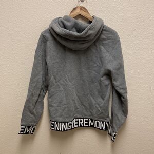 Gray hoodie from Opening Ceremony. Cuffs and hem have brand spell out detail. Size small.