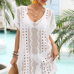 Openwork Plunge Dolman Sleeve Cover-Up Dress