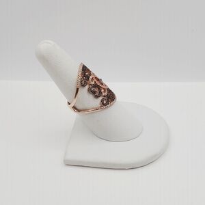 Elevate your style with this breathtaking lace style statement ring, masterfully crafted in 18K rose gold over genuine 925 sterling silver. The intricate openwork design sparkles with a blend of simulated brown and white diamonds, creating a sophisticated contrast that radiates warmth and brilliance.