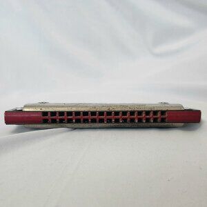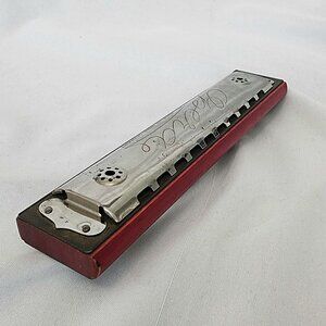 This vintage Opera C Note Harmonica is a rare find for any harmonica enthusiast. Made in West Germany between 1950 and 1960, this harmonica features a beautiful red wood finish and is in excellent working order. The brand, Opera, is well-known for producing high-quality musical instruments, and this harmonica is no exception. The instrument is perfect for players of any skill level and is ideal for those who enjoy playing folk and world music. The key, C, is the standard key for harmonicas and makes it easy to find the perfect pitch. This harmonica is a must-have for any collector of vintage wind and woodwind instruments.