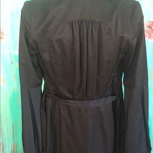Black silky Satin like sheen size M Opera coat with pockets and belt. Very chic and sleek. New with no tags