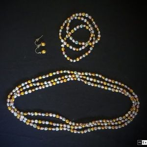 Pearl set includes necklace, 3 bracelets, earrings, and silk pouch!