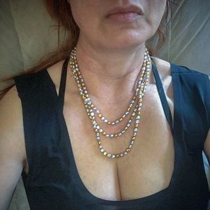 Genuine dyed fresh water pearls. Multi colored pink, gold, and blue oblong shape pearls.