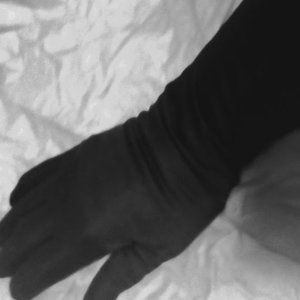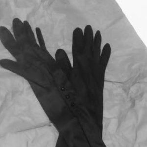 Vintage Classy Double woven 100% Nylon B . Black Elbow length Opera gloves. Stretchy with 3 buttons on the inside of the wrists. One glove is missing one button. Otherwise they seem to be brand new.
