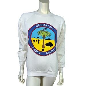 Style: Classic sweatshirt with Operation Desert Shield graphic.