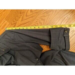 Operations NYC 60 Mercer Street Quiet Luxury Contemporary Chic preppy double breasted light blazer jacket with pockets and drawstring. Women's size Medium. 3/4 sleeves. Window pane pattern and dark grey color.
