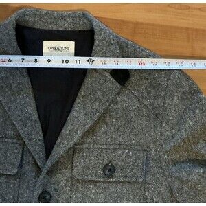 Operations NYC Men's Tweed Wool Blend Blazer 44R Gray Sport Coat Elbow Patches
