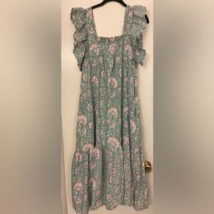 Ophelia & Indigo Flora Midi Dress Mint & Lilac Size Large.