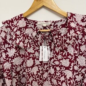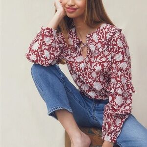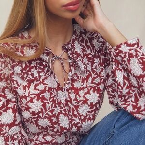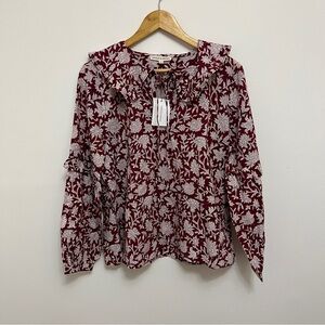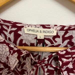 Ophelia & Indigo Women's Betsy Blouse Red Long Sleeve Floral Size Large NWT