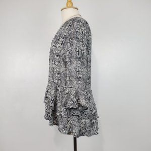Ophelia Roe Black Snakeskin Print Bell Sleeve Layered Pullover Top Size M