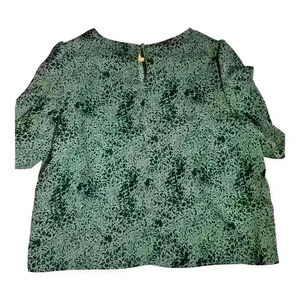 Ophelia Roe Blouse L green black animal print 1 button back Rouched Puff Sleeve