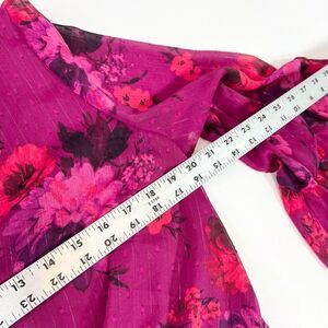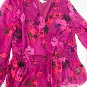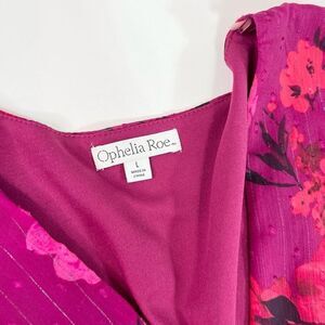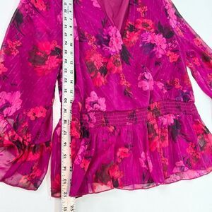 Ophelia Roe Blouse Womens Large Pink Floral Surplice V-Neck Smocked Waist Top