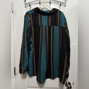 Ophelia Roe Blouse women’s plus sz 1X retro 70s vertical stripe roll tab sleeve