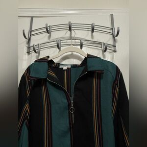 Ophelia Roe Women's 1/4 Zip Blouse Multi Striped 1X Roll Tab Sleeve Colorful Fun
