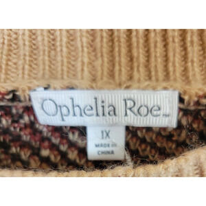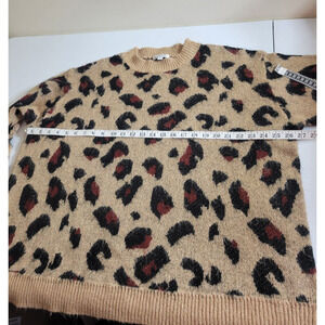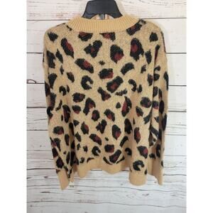 Ophelia Roe Brown Leopard Print Knit Crew Neck Pullover Sweater Women's Size 1X;