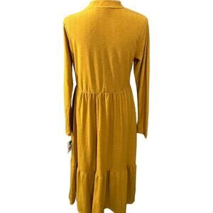 Ophelia Roe High Neck Yellow Tier Knit Long Sleeve Midi Dress Size XL