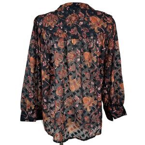 Ophelia Roe Semi Sheer Floral Blouse Women’s M Black Orange Button Front