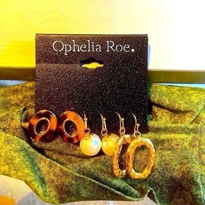 Ophelia Roe - Set Of Three Gold Tone Fashion Earrings - NWT