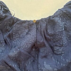 Ophelia Roe Shirt Womens Blue Puffs Texture Balloon Sleeve Burnout