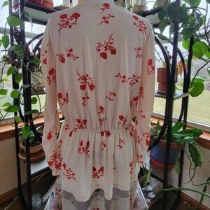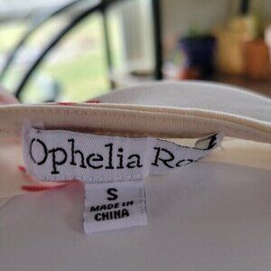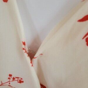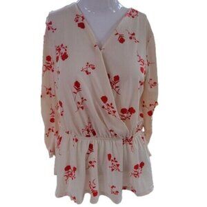 Ophelia Roe Small Wrap Smocked Blouse Cream Red Floral V-neck Elastic Waist EUC