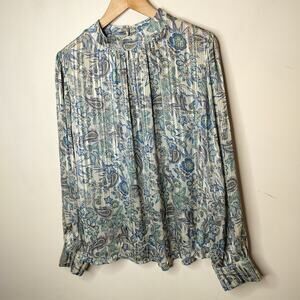 Ophelia Roe Top Floral Paisley Metallic Boho Balloon Sleeve