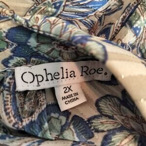 Ophelia Roe paisley floral metallic long sleeve top. Size 2X. Polyester. (21574)
