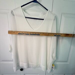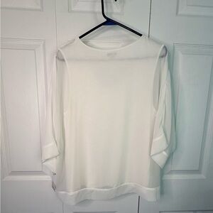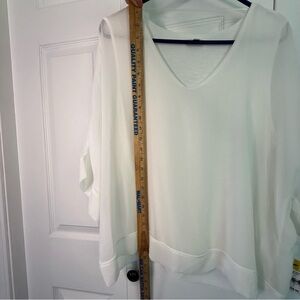 Elegant white V-neck blouse double layer with sheer sleeves. Perfect for any occasion. size large