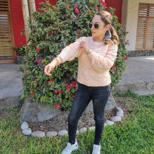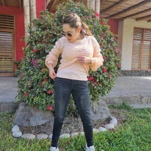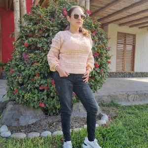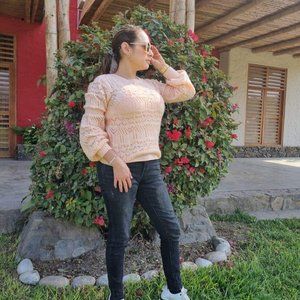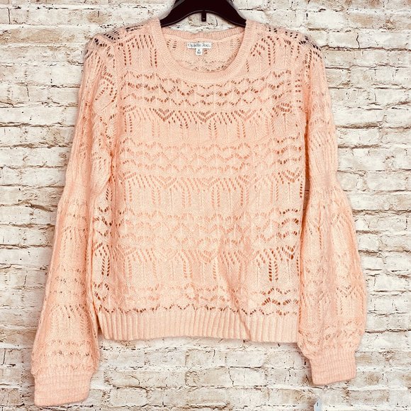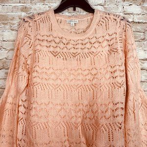 Ophelia Roe Women's Peach Puff Sleeve 2pc Camisole Knit Crochet Sweater NEW