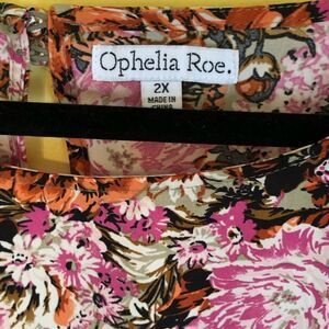 Ophelia Roe. Womens Floral Print Ruched Sleeve Top Blouse Black Pink Size 2X NWT
