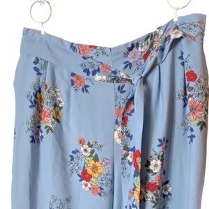 Ophelia Rose Wm’s Sz 2X Blue Floral Oversize Elastic Tie Waist Wide Leg Pants