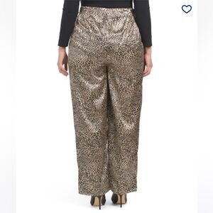 Oppa! Plus Straight Fit Animal Print Satin Pants Gold Leopard 1X NWT