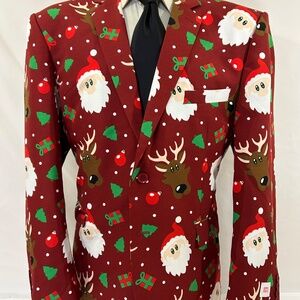 -Oppo Suits Christmas Holiday Santa/ Rudolph Red Mens Suit Jacket, Size 46 or XL