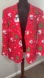Stand out this holiday season with this vibrant red suit featuring playful snowman and tree prints. Perfect for festive gatherings and holiday parties.