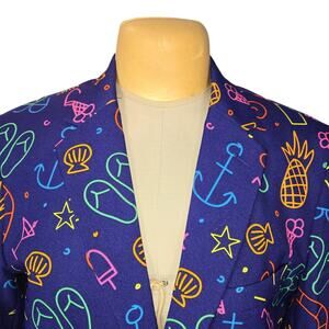 OppoSuits Mens US42 Beach Party Neon Print Blazer Jacket EU52 Summer Novelty AOP