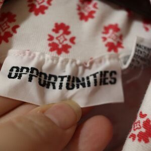 Opportunities is known for playful, retro-inspired designs, and this 1990s turtleneck perfectly captures cheerful vintage charm. Featuring red and white floral print with candy cane vibes, it brings whimsical energy to layered looks or festive styling. Its lightweight cotton-poly blend offers comfort and easy movement, making it ideal for pairing under sweater vests, blazers, or casual layering pieces. True 90s styling ensures nostalgic appeal, while its versatile silhouette adapts to both everyday and seasonal outfits. A fun, retro top that adds color and personality to any wardrobe.