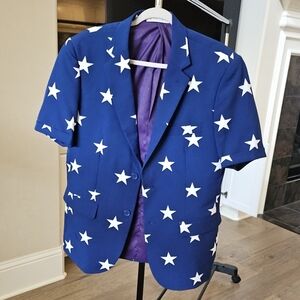 OpposuitsBlazer Adult Blue White Stars Print Sport Coat Jacket us 42