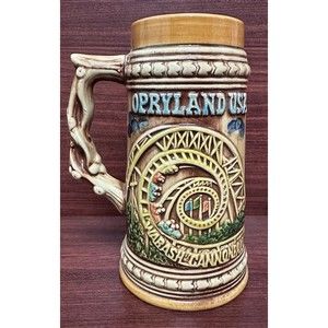 This vintage Opryland beer stein is a rare find for any collector of Breweriana and beer-themed items. With its unique design and the iconic Grand Ole Opry logo, this mug is a must-have for fans of the famous amusement park and country music venue. Made in Japan and featuring the brand name OPRYLAND, this mug is a piece of history from the 70s/80s era.
