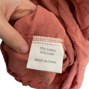 Opt Linen Blend Minimalistic Ruffle Strap Pocket Tunic Mini Dress Large