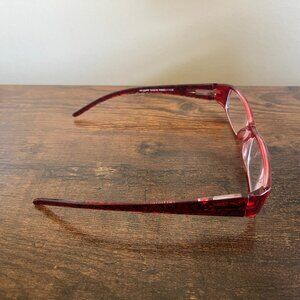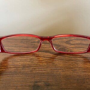 Stylish and durable OptiX 20/20 women’s red eyeglass frames, perfect for everyday wear. These frames only feature a glossy red finish with subtle pattern detail along the temples, offering a bold yet versatile look. Made of lightweight plastic, they’re comfortable for all-day use and designed to fit most face shapes. These OptiX 20/20 red eyeglass frames are in pre-owned condition and have been gently used. The frame shows minimal surface wear from normal handling and storage, including very light scuffing on the arms and edges that does not affect function or appearance. Hinges open and close smoothly, and all markings remain visible. Clean and ready for new lenses or display. These lenses have scratches on them please replace with your own custom lenses.