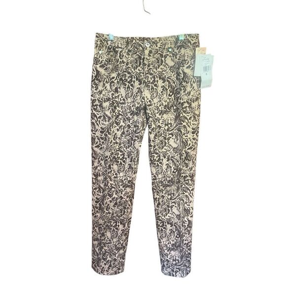 Options Garfield & Marks Printed Beige/Brown Pants Sz 6 NWT