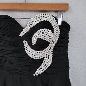 Opulence England Dress Women 6 Black Strapless Flare Beaded Mini Formal Cocktail