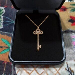 Indulge in the opulent beauty of this rose gold key necklace, featuring fine detailing and carefully placed crystals for an exquisite and luxurious feel.