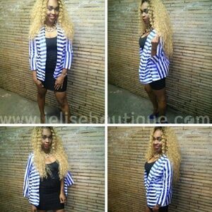 Opus LONDON Cobalt Blue and White Stripe Collar Blazer