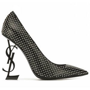 Opyum 110 YSL Logo Heel Leather Pump with Studs