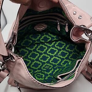 Or Yany Pink Leather Shoulder Crossbody Bag great condition no tears small stain nothing mayor magnetic closure 1 exterior zip pocket one slip pocket clean odor free see pictures for reference. You have a question don't hesitate to ask