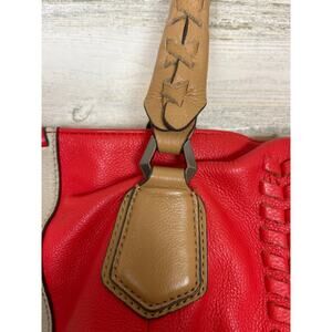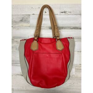 OrYANY Lyssie Large Coral Tan Pebbled Leather Colorblock Shoulder Tote Bag