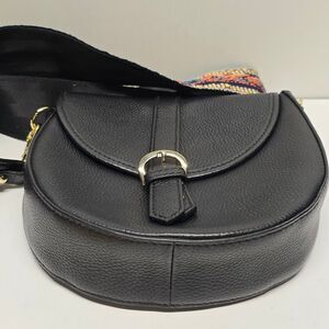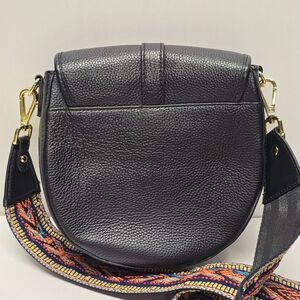 Ora Delphine Billie Guitar Strap Saddle Bag Black Pebbled Leather Crossbody.