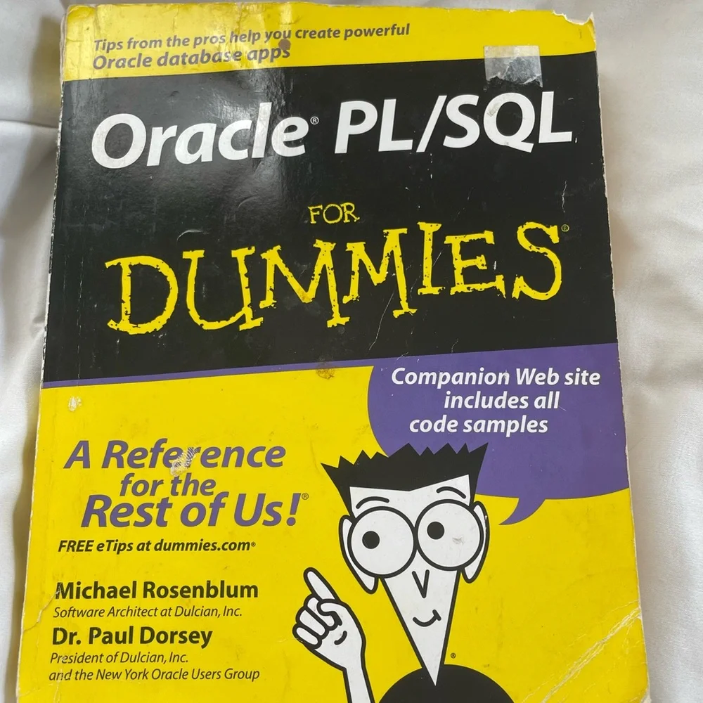 Oracle PL/SQL For Dummies. Cover has small rip at the top as shown in photo. Bottom of book is written on as shown in photo. Has a few things written or highlighted and does not affect the reading. Perfect for computer majors