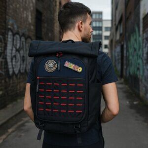 Show your support for Oracle Red Bull Racing with this premium Built for Athletes backpack. Designed for durability and performance, this roll-top style backpack is both functional and stylish. It features a large main compartment, front MOLLE-style panel with red accents, multiple zippered pockets, and mesh side sleeves for bottles or accessories. The padded shoulder straps and back panel ensure comfort, while the "Built for Athletes" and Red Bull Racing branding highlight its authenticity. Perfect for gym, travel, school, or everyday use.